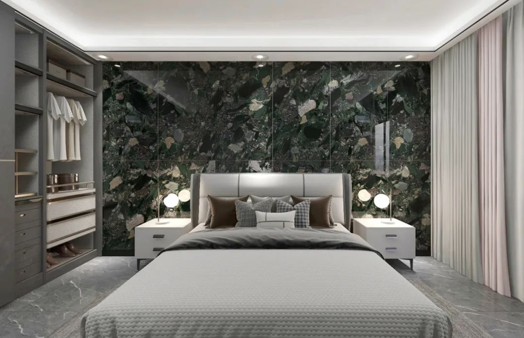 無彩色是現代簡約風格的常用色彩,其中白色常用作背景色出現,軟裝中可以搭配黑、白、灰、金、銀這幾種色彩。