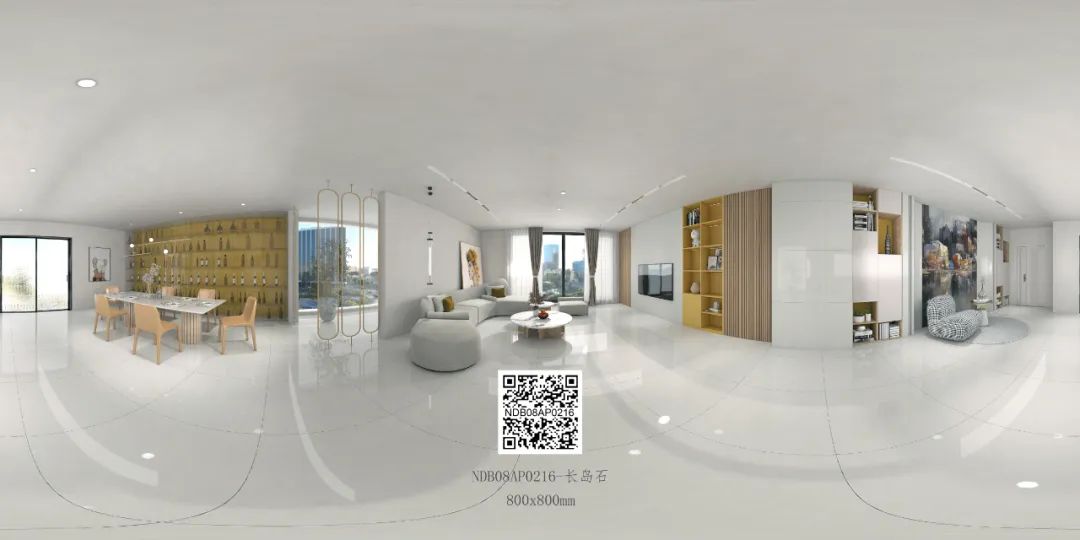 作為方正磚的代表,800x800mm規格鋪貼多樣性更為突出,以一塊磚為支點,前后左右連接整個空間,更具規格平衡美感。