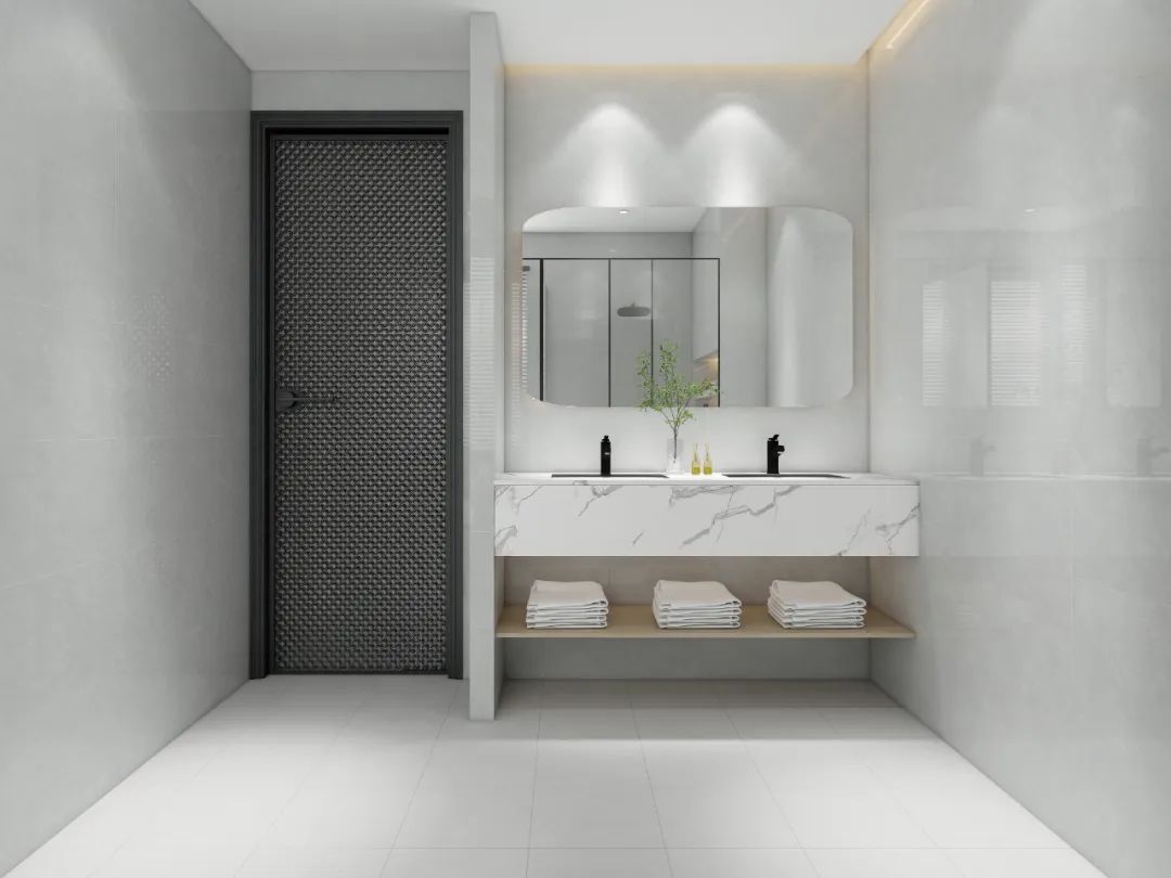 高端、氧分十足的衛浴空間,沙魚灰靈氣活現,與智氧空間渾然一體。