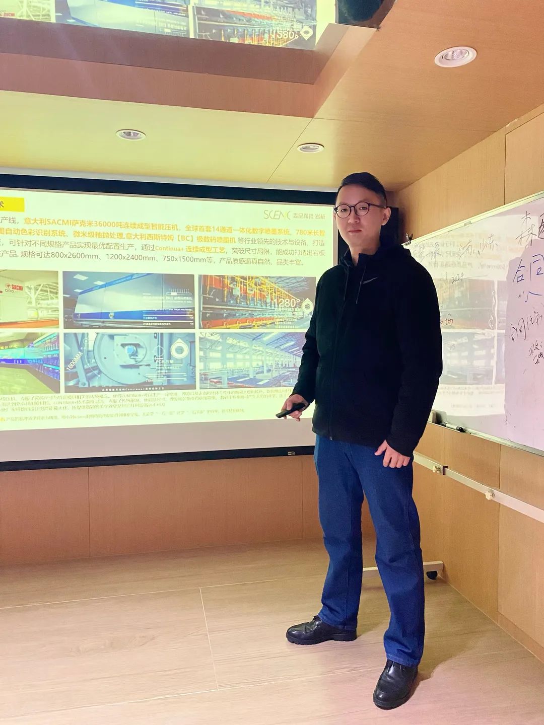 森尼陶瓷·巖板產品經理陳斌從區位優勢、佛山本“土”優勢、產品優勢及匠心文化等各方面展開。