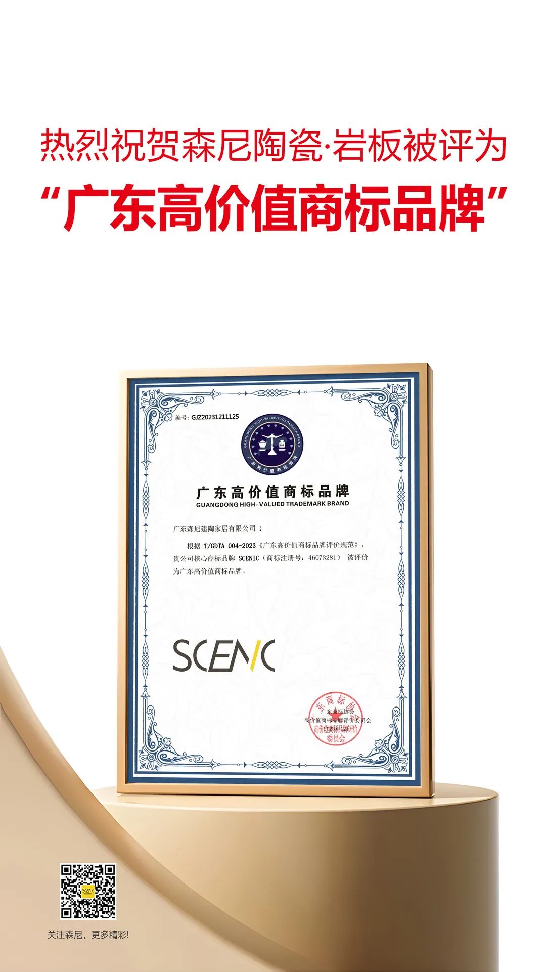 近日,“廣東高價值商標品牌發展論壇暨成果發布會”在廣州成功舉辦。在本次的廣東省重點行業(陶瓷)高價值商標品牌榜單中,廣東森尼建陶家居有限公司旗下森尼陶瓷·巖板作為佛山本土品牌,憑借其強大的綜合實力躋身前列。