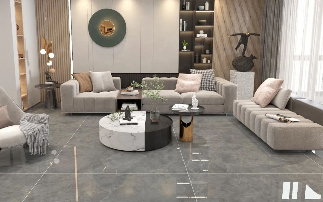 云霧灰NHB573GP0035紋理復雜多變,在家居空間應用中可搭配暖色系、冷色系,搭配象牙白背景墻與黑白相間的茶幾,能夠讓每一種色彩都在其襯托下熠熠生輝,為空間打造滿滿的現代溫馨時尚感。